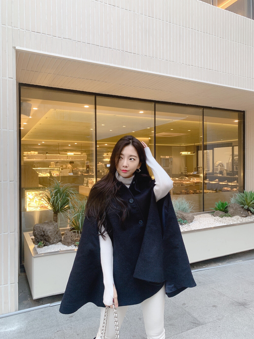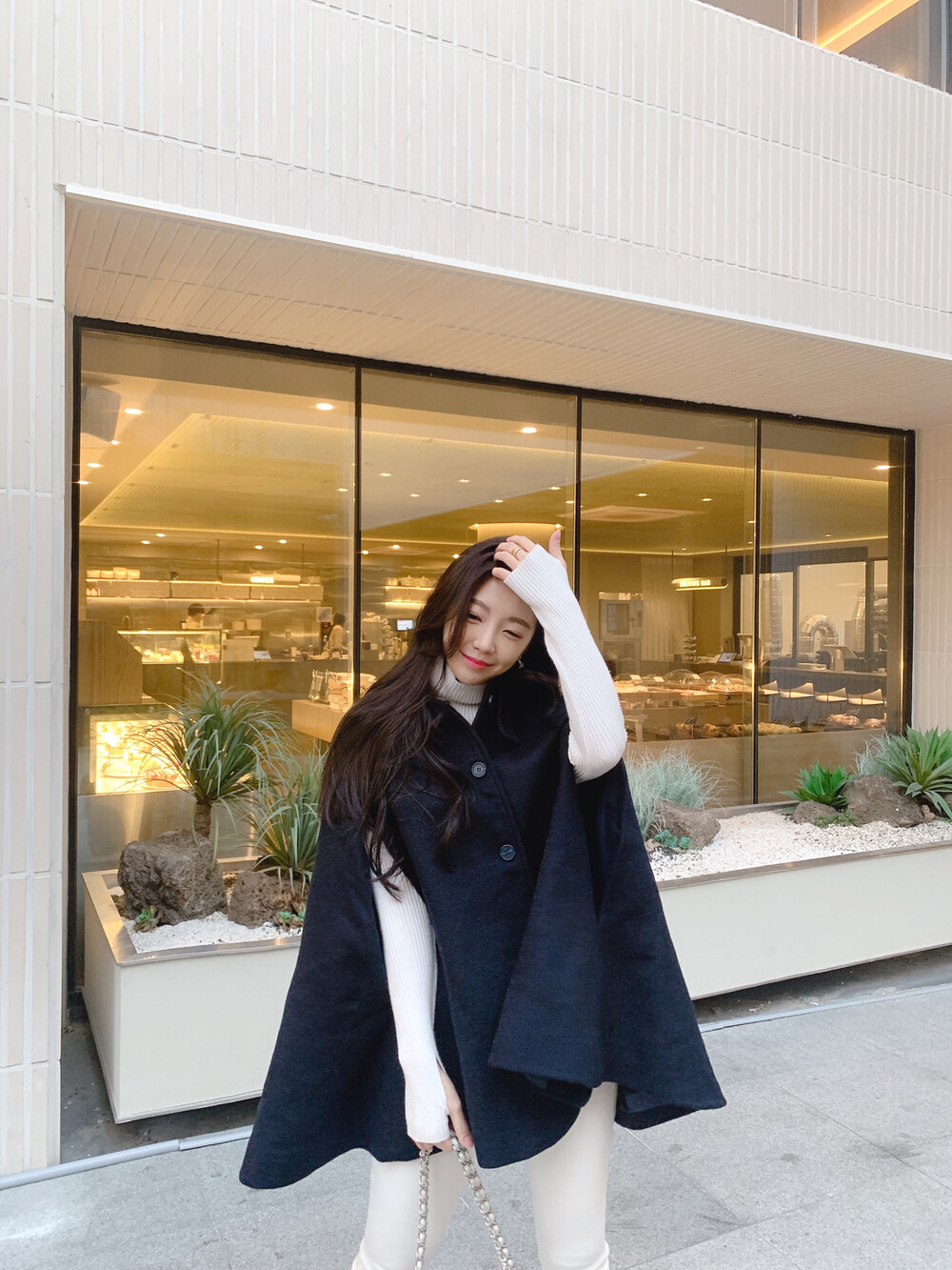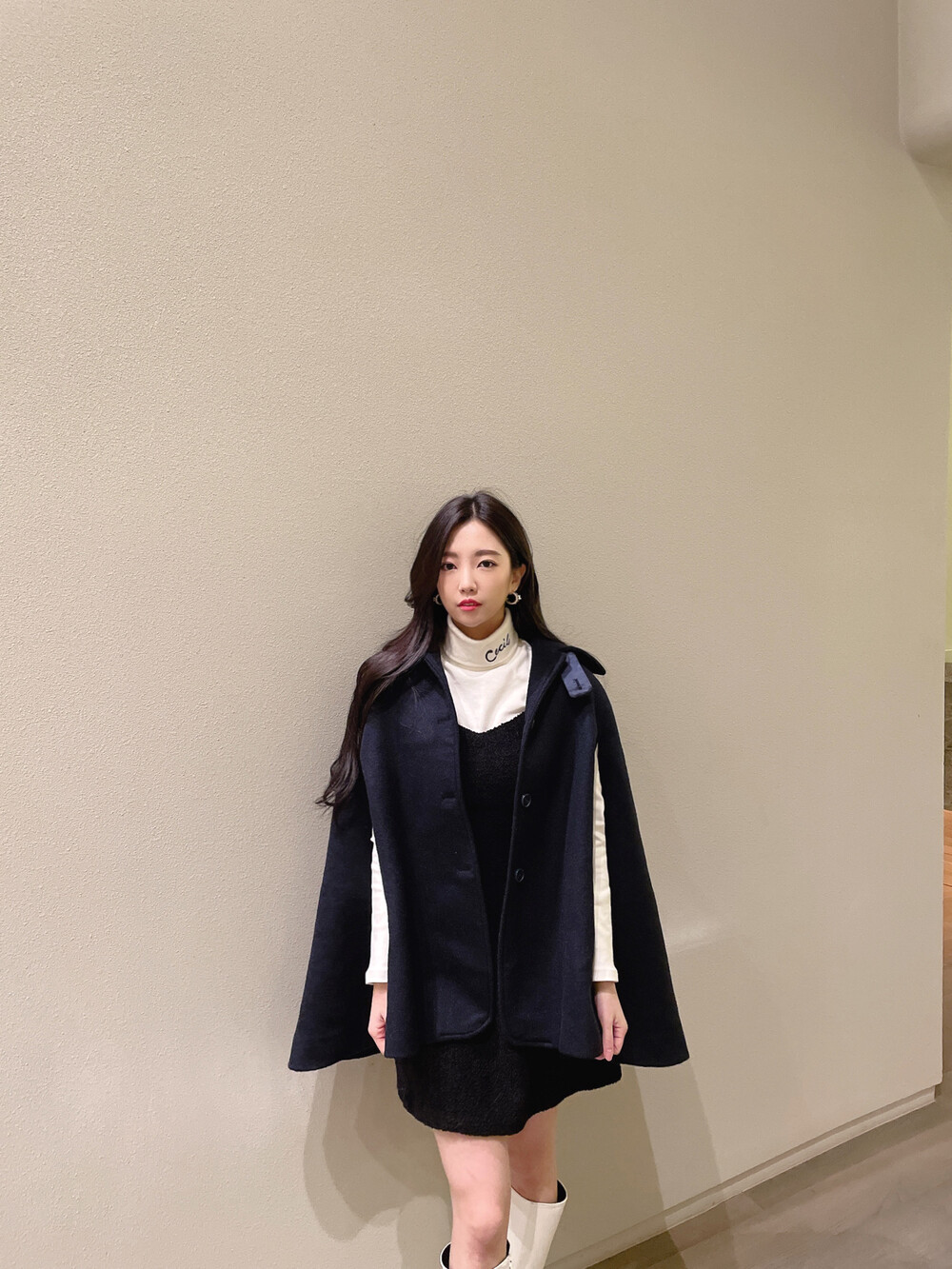 탄탄한 소재의 케이프 코트에요!