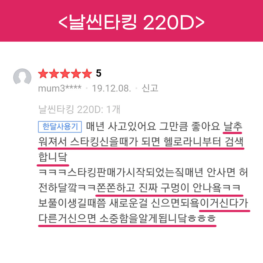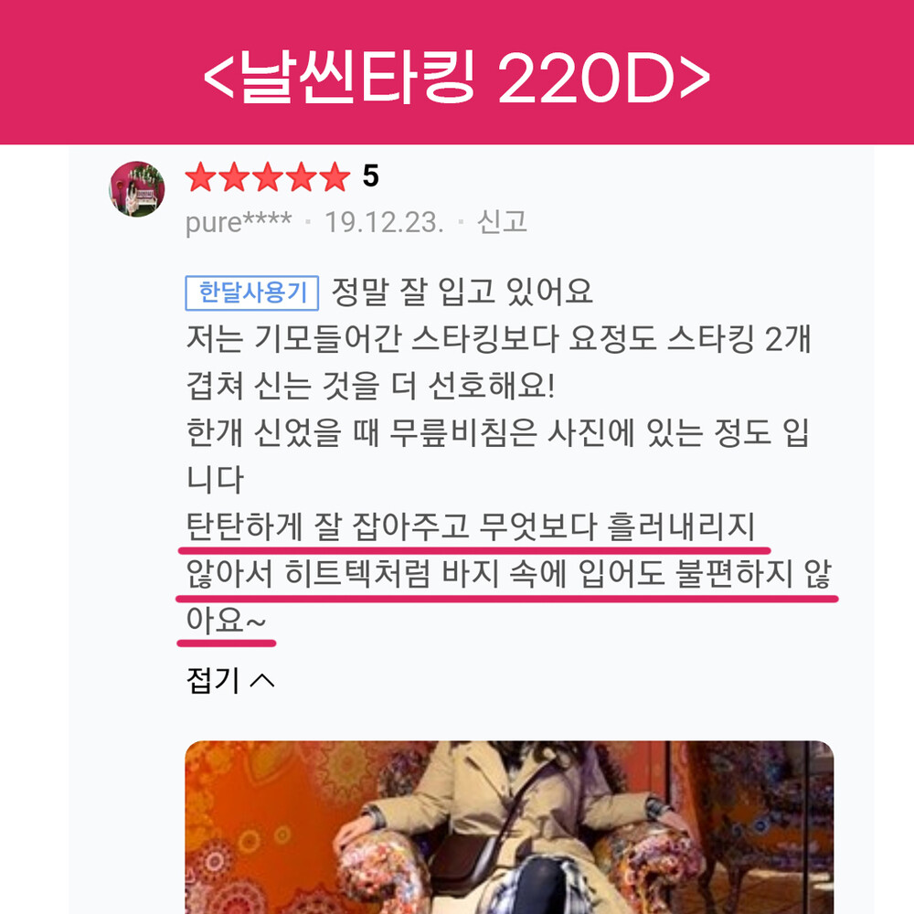 반스타킹 1개 + 220D 1개 + 300D(기모) 1개